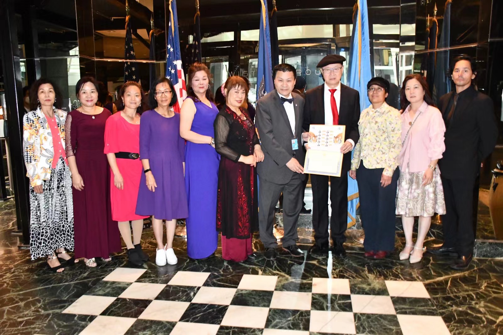 聯合國網合集團與羅斯柴爾德俱樂部,積極響應聯合國可持續性發展目標,幫助發展中國家和婦女弱勢群體。本次活動特別感謝出席的社會各界人士、聯合國愛心志願者,斯里蘭卡常駐聯合國代表團:哈林德拉·庫馬爾·斯里馬爾佩里斯部長先生,感謝羅斯柴爾德俱樂部,聯合國大愛俱樂部、中東歐國家十六加一、中國阿拉伯國家貿易促進會,與中國供銷海外購集團、聯合國和平音樂會合作夥伴。聯合國網合集團舉辦的堪布索南哲林耶澤仁波切唐卡藝術聯合國巡迴展新聞發布會,特別製作聯合國郵票首日封頒獎給汪預和平大使。希望通過本次活動有更多優秀的世界各國藝術家與優秀的商業朋友,一起參與建設美麗的聯合國。因愛而改變自己、改變美麗的世界。