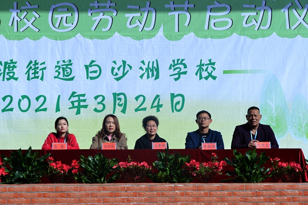 ▲上渡街道白沙洲学校首届校园劳动节启动仪式现场。