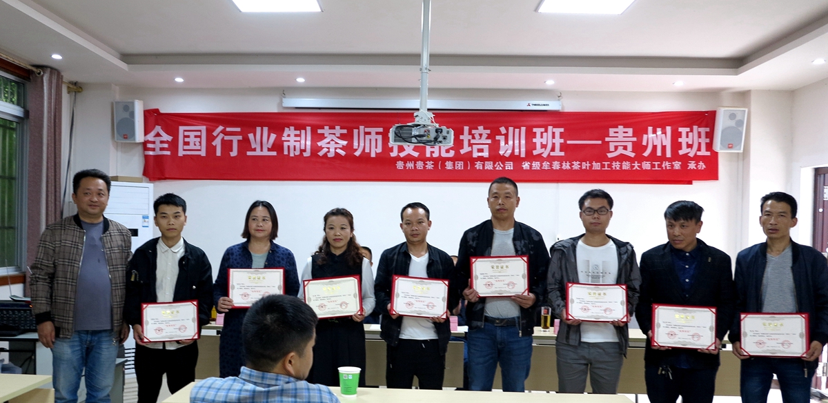 培训期间,经过为期一周的理论学习和实操培训,培训班31名学员于5月29日顺利结业,在结业典礼上,贵州绿茶品牌促进会会长、贵州贵茶(集团)有限公司董事长徐谦先生莅临指导,他对此次培训班举办和开展情况作了充分的肯定,并从涉茶政策、贵州茶的质量技术要求及发展方向进行了分享,给予各位学员极大的鼓舞,优秀班干部和优秀学员进行了发言,他们坦言此次学习收获颇丰,授课老师代表对此次培训班举办的背景和重要性进行了详细讲解,据悉,培训经理论考试和实操考核合格后,将由“中华全国供销合作总社职业技能鉴定指导中心”颁发专业技术证书,培训承办方表示,为进一步助力贵州茶产业高质量发展,下步将持续举办制茶师、评茶员及茶艺师培训班,力争为贵州茶产业发展多培养实用人才、技术技能人才和综合性高技能人才做出一定贡献。