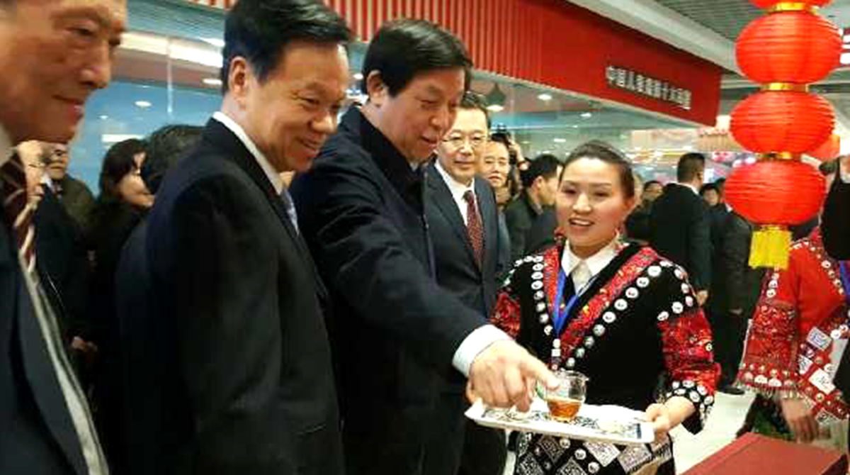 黔西南州新的社会阶层人士联谊会副会长、黔西南州网络人士联谊会会长、华建兴创-兴义之窗执行董事王传辉;全国人大代表、南中源茶旅公司董事长韦波;普安县人大代表、新联会会长、贵州省劳模、全国青年致富带头人布依人家茶叶合作社理事长岑开文为蛮邦贡春普安红茶黔西南销售中心揭牌。