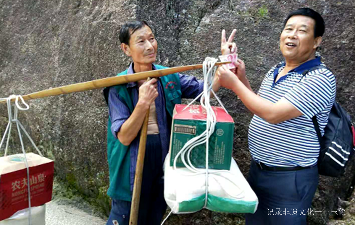 杨传武在黄山偶遇挑夫挑着152斤的货物在半山腰停下,汗流夾背,:当时杨传武十分敬佩,他联想起习总书记说的“劳动最光荣,劳动最美丽,劳动最伟大”。这句话的深刻函义,是啊!