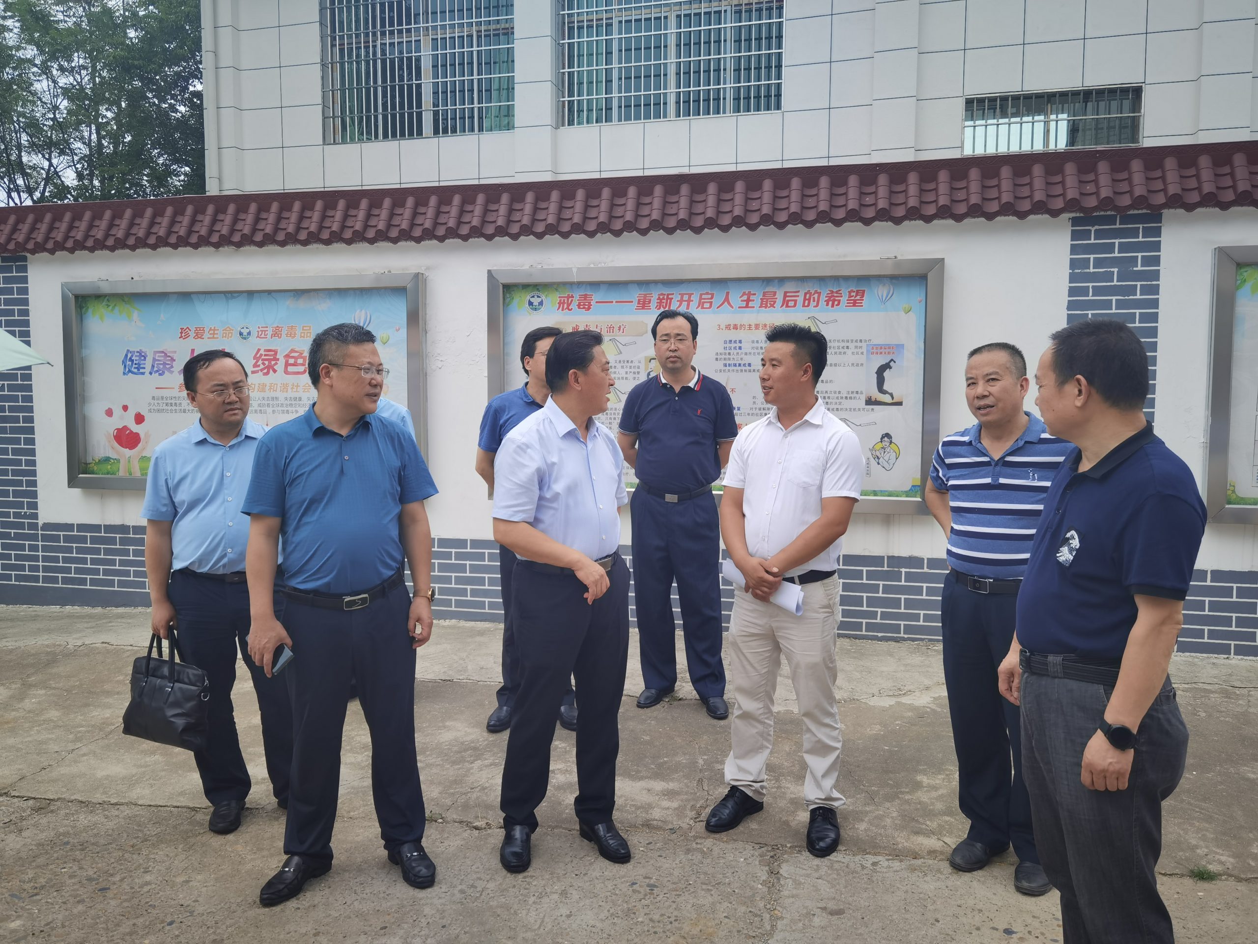 随后,李铁雄、徐长青、刘伟、李笃成、欧阳灼亮、向盛、陈锡光等同志陪同督导组深入实地督导新化县蓝结家园建设基地。在新化县蓝结家园建设基地,黎石秋一行仔细参观了基地的技能培训教室、图书室、宿舍、体能康复中心等处,督导组充分肯定了新化县在被省禁毒委“重点关注”后禁毒工作各方面取得的成效,但因新化是全省人口第一大县,在册吸毒人员全省排名第三,潜在涉毒问题不容小视,吸毒人员肇事肇祸(案)事件发生机率大,禁毒工作任重道远。黎石秋指出新化县要进一步提高政治站位,深入贯彻落实习近平总书记关于禁毒工作的指示批示精神及党中央、国务院、省委省政府决策部署,进一步坚定做好禁毒工作的决心和信心,切实加强禁毒工作的责任感和紧迫感。要围绕建党100周年大庆安保维稳主题主线,务必确保“六个不发生”,全力打好禁毒严打整治攻坚战。要借托“蓝结家园”建设,扎实开展“平安关爱”行动,持续深化“三清一收”,深入推进农村毒品问题治理,全力打赢新时代禁毒人民战争。新化县县委书记李铁雄表示要深入贯彻落实全国禁毒重点整治“凉山”会议精神以及《湖南省禁毒委员会关于全省毒品问题严重地区调整认定的决定》有关安排部署,坚持“预防为主、严打开路、重点整治、全民参与、严格问责”的禁毒工作思路,不断加大禁毒专项行动开展力度,纵深推进禁毒重点整治工作,以更加强有力的措施确保新化县禁毒工作再上一个新台阶。