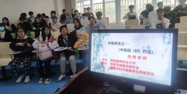 4月12日由贵阳康养职业大学主办,贵阳市健康管理学会,贵阳市科学健康养生养老学会协办,邀请贵阳市科学健康养生养老学会会长刘奇(中医综合外治保健技艺非遗传承人)为贵阳康养职业大学八十余人师生传承中医养生之-----中医指(针)疗法
