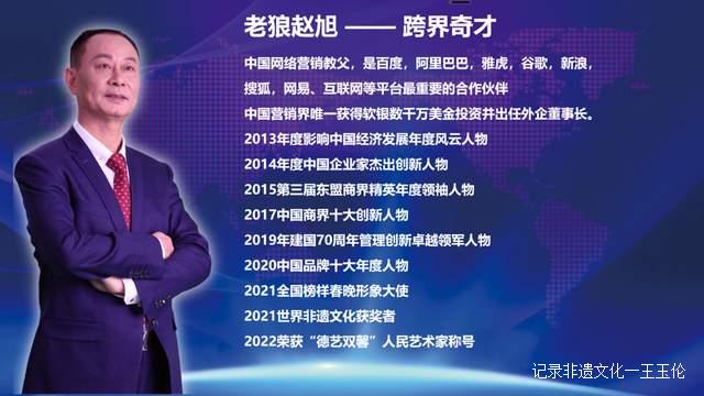 赵旭先生,2020年荣获中国十大影响力品牌人物之一,是第四届全国榜样春晚形象大使、2021第44届世界非遗文化传人、2022年德艺双馨人民艺术家。这位在中国互联网营销界、文化艺术与国际金融界满载盛誉的”跨界奇才”,几乎在其涉足的每个领域内都成就非凡。他是中国互联网第一代的网络营销开创者,为了将营销做到极致,还为自己的网名冠以“老狼赵旭”,并以此IP注册了第9、16、35、41类商标。