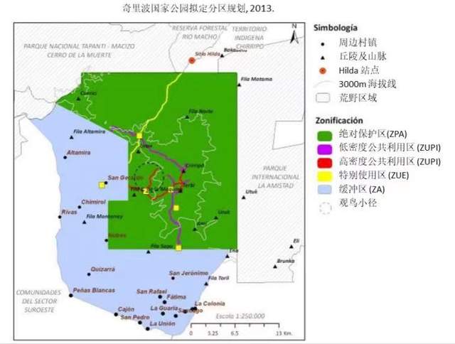 人为活动和基础设施严格按照分区开展,大家可以看到公园大部分是绝对保护区,只有线状地带允许旅游和经营。