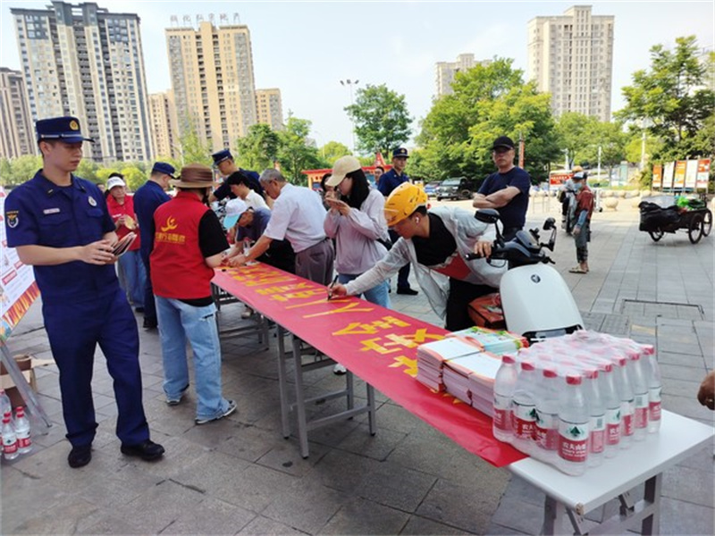 在辖区住宅小区中,大队联合社区工作人员和消防志愿者,设置宣传展台,向居民展示、讲解常见消防产品的应用场景和使用方法,尤其是手提式干粉灭火器的使用方法。同时还向居民科普假冒伪劣消防产品的识别方法、购买消防产品的注意事项,提醒市民从正规渠道购买消防产品,警惕假冒伪劣消防产品,坚决抵制不合格消防产品。