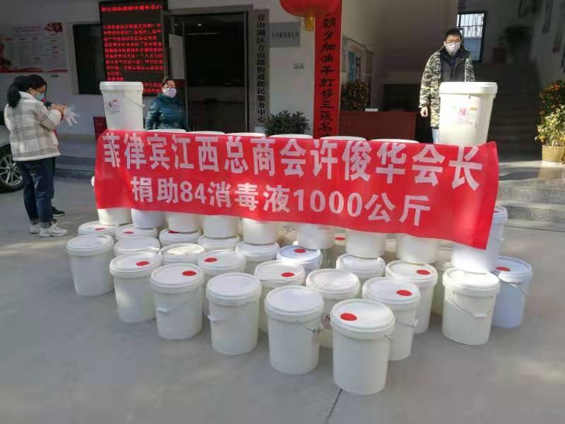 中国记录通讯社消息 根据江西省直机关工委《关于省直机关党组织和在职党员干部协助社区做好疫情防控工作的通知》要求,江西省侨联闻令而动、积极作为,2月9日下午,根据会领导指示要求,机关党委组织部分机关党员志愿者赴青山湖潘坊社区参与相关疫情防控,协助社区做好疫情防控工作,并将由菲律宾江西总商会会长许俊华先生捐赠的1000公斤84消毒液转交给社区,助力做好社内疫情防控工作。