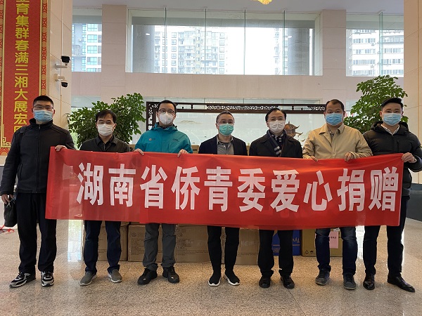 中国记录通讯社消息 2月27日,湖南省侨联党组成员、副主席李祖元率办公室、机关党委、宣联处、省侨青委一行7人向湖南省新冠肺炎疫情防控工作领导小组防疫物资保障组移交海外定向捐赠省侨联的5批防疫物资。湖南省工信厅副厅长、省新冠肺炎疫情防控指挥部物资保障组组长马天毅,副组长唐勇接收物资。