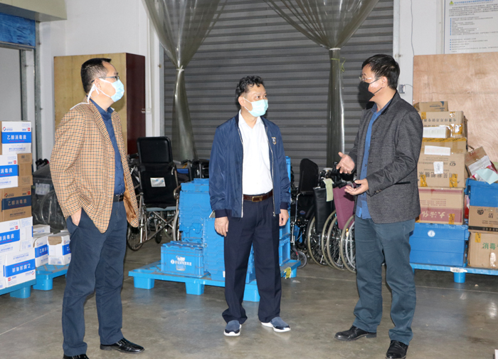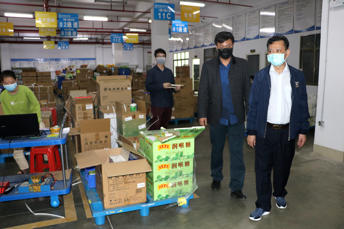 海南省侨联主席黎才旺在海南源安隆医药现代化物流中心药品分配车间了解复工复产情况 陈苏琤 摄