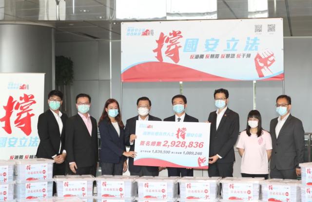 香港各界撑国安立法联合阵线由全国人大常委会委员谭耀宗等13位召集人共同发起组建。5月24日至31日,联合阵线在全港开展为期8天的“撑国安立法”签名行动,开设5400余个街站,收集街头签名1839590个、网络签名1089246个,签名总数为2928836个。