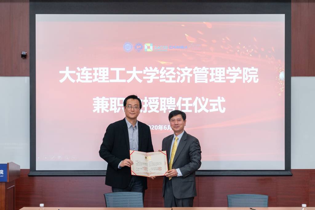 在接下来的聘任仪式上,朱方伟向王立新颁发了经管学院兼职教授聘任证书。王立新是达伦特集团创始人、董事长,中国日化行业协会副理事长。在他的带领下企业经历23年的持续稳步发展,已经成为国内香氛行业的领军企业之一。特别是2017年王董事长开始出任大连理工大学MBA创新创业导师,主动参与到MBA人才培养的各阶段,也作为企业家代表担任全国管理案例精英赛的评委,把自己充满实战的宝贵经验和发展历程中的思想感悟倾囊传授。