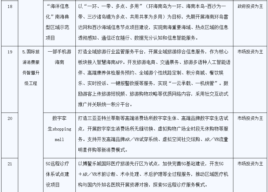 必要性:5G对于数字化、智能化转型具有基础支撑作用,将成为实体经济高速发展的新引擎、推动新一轮信息消费扩大升级、提升公共服务水平、形成万亿级关联产业。海南以推进5G建设和应用为突破口,将为海南自由贸易港建设起到“筑巢引凤”作用,极大推进海南省经济社会发展。