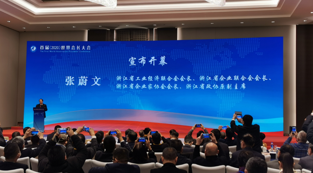 浙江省工业经济联合会会长、浙江省企业联合会会长、浙江省企业家协会会长、浙江省政协原副主席张蔚文到会宣布开幕。中国企业联合会、中国企业家协会常务副会长兼理事长、工业和信息化部原党组成员、总工程师朱宏任到会作主旨演讲。杭州市公共关系协会会长、杭州师范大学原党委书记崔鹏飞到会与其他与会领导一起为“世界会长投资联盟筹备委员会”成立启动。台湾地区“财政部”原负责人刘忆如博士,英国太平绅士、 英国华人文化传承中心主席、伦敦市前议员Edmond Yeo 博士等海外知名人士应邀发布视频致辞。大会由首届世界会长大会组委会主席、浙江经济理事会常务副主席、杭州市公共关系协会执行会长、浙江经济网总编辑刘江主持。