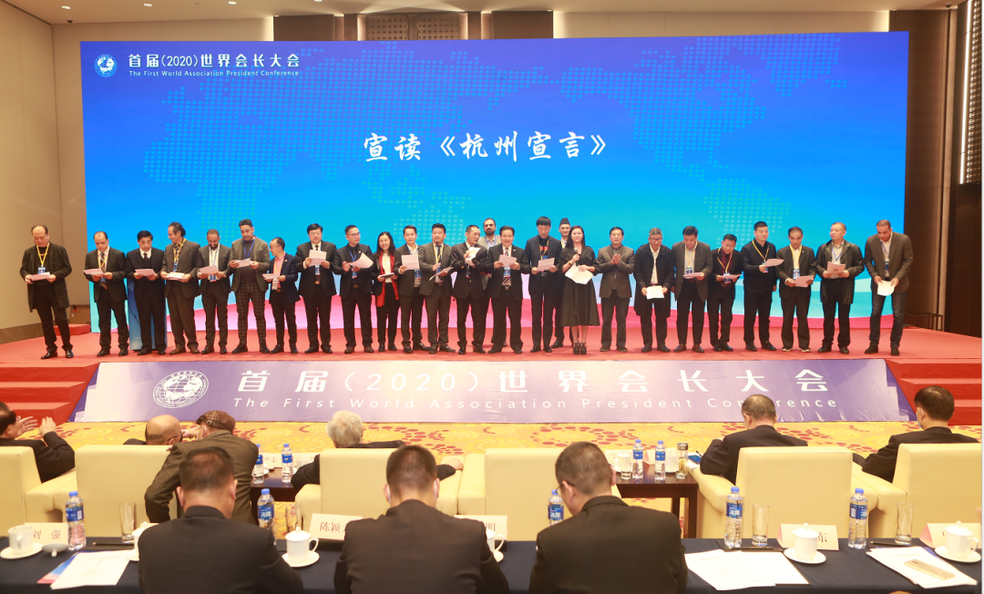 潮涌钱塘,群贤毕至。2020年11月27日,首届世界会长大会暨第11届西湖公共关系论坛在杭州隆重召开。大会以“共抗疫情 共创繁荣”为主题,200多名海内外商(协)会会长齐聚钱塘江畔,共议后疫情时代构筑全球抗疫防火墙,畅通世界经济运行脉络,提出了用心涵养新生态、全力培育新经济、大力布局防火墙、构建命运共同体,培育复杂形势下国际合作发展新优势。