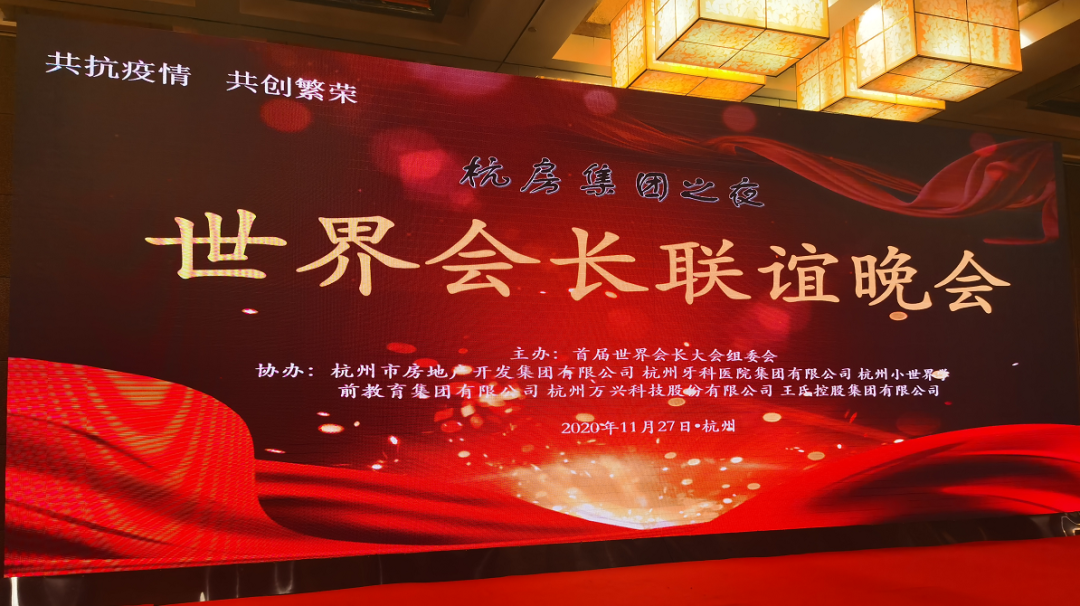 当天晚上还举办了“杭房集团之夜——世界会长联谊晚会”。晚会上对抗疫先进社会组织、会长、企业进行了颁奖。