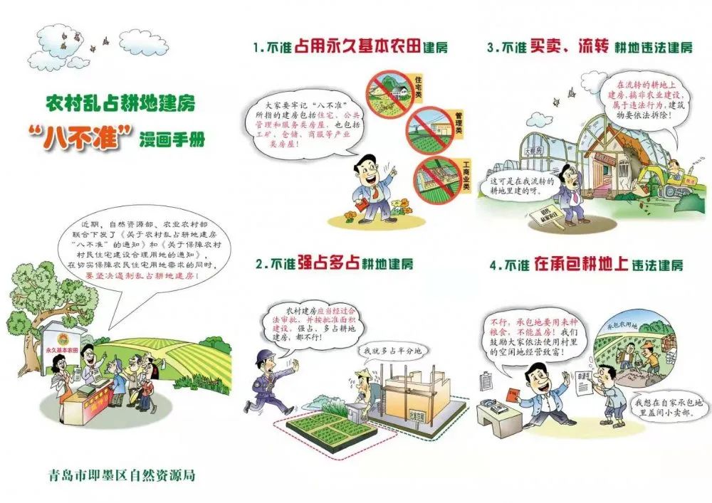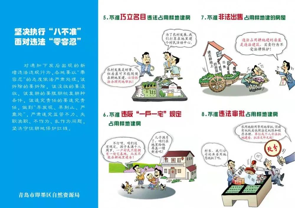 02、2020年7月自然资源部、农业农村部出台了关于农村乱占耕地建房“八不准”,规定: