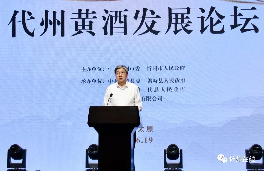 6月19日,中共忻州市委、忻州市人民政府在太原举办代州黄酒发展论坛,副省长贺天才出席并宣布论坛开幕。省政府副秘书长丁永平出席,省工信厅厅长武宏文、省农业农村厅厅长刘志杰、省食品工业协会会长李秋喜出席并致辞,市委书记朱晓东出席并讲话,市委副书记、市长李建国主持论坛开幕式,市委常委、秘书长、统战部长张文伟,市人大常委会副主任、市总工会主席罗志宏,副市长崔峥岭,市政府秘书长张艮生出席论坛开幕式。中国酒协固态白酒原酒分会会长谢明出席,全国白酒专业委员会专家赖登燡、中国中药协会药酒专委会副主任委员兼秘书长刘根喜等嘉宾作了致辞。中国工程院院士、北京工商大学校长孙宝国,北京大学光华管理学院副院长、市场战略及行为科学教授、博士生导师张影通过视频致辞。省直相关部门负责人、协会嘉宾、高校嘉宾、省内外企业嘉宾及繁峙县、代县等相关县(市、区)负责人参加。