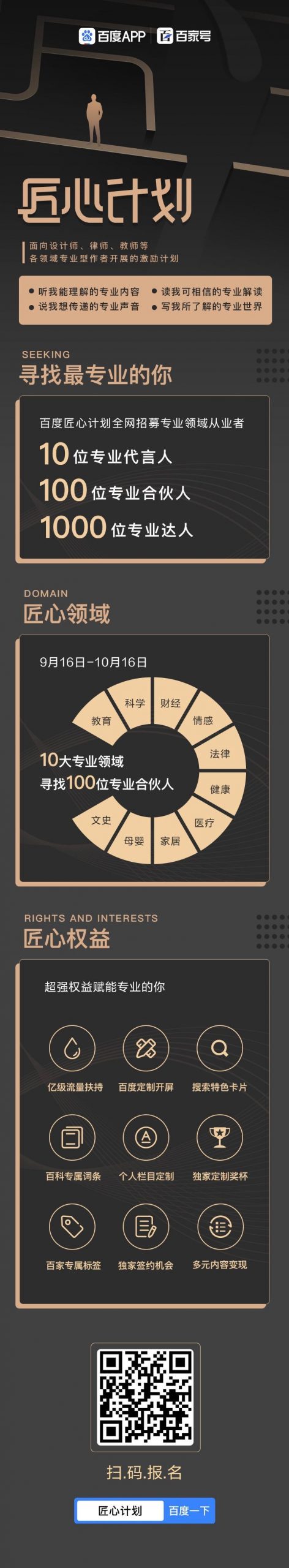 百度携超高流量面向法律、财经、科学等专业领域,全网招募10位专业代言人、100位专业合伙人、1000位专业达人!10大重磅权益护航、亿级流量扶持、高额现金奖励等超多福利等你来领!
