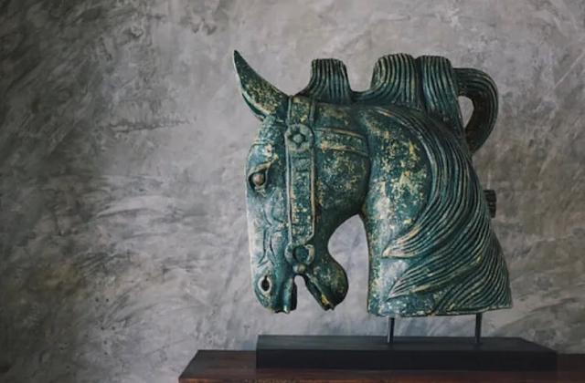 鞋柜上的马头摆件。
