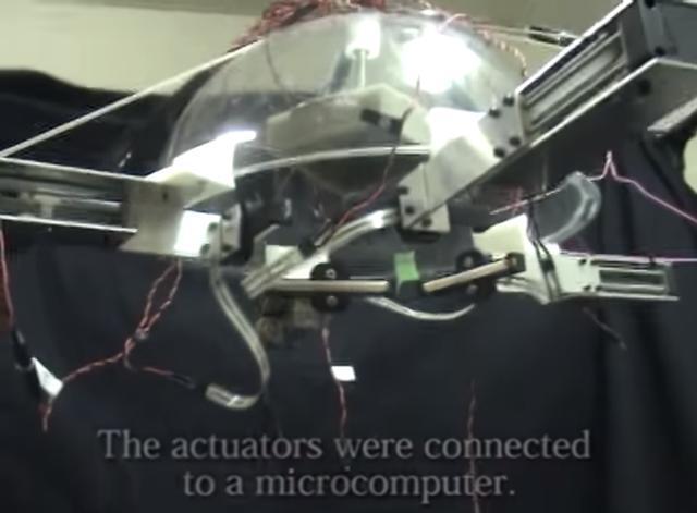 结果现在很明确,于是研究人员就开发了这样一个装置,它可以分别给额颞部两侧施加一个力。