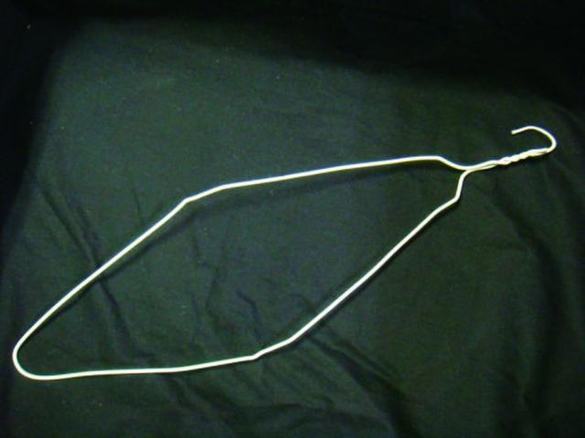 那些没有做出这个实验的朋友们可以参考下我的办法,把衣架掰一下,一定要选择质量好一点的衣架,至少要硬,要能感受到有强烈的夹头的感觉。