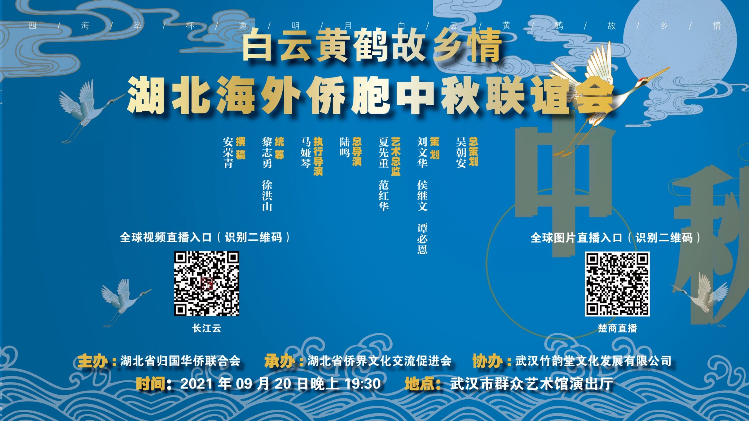 9月20日晚7:30,由湖北省侨联主办的“白云黄鹤故乡情——湖北海外侨胞中秋联谊会”,将亮相江城武汉,并通过长江云等多个平台向全球华人华侨、归侨侨眷同步直播。