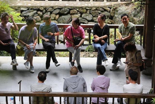 “远上寒山石径斜,白云生处有人家。”在仙寓山景区内,随处可见游客,他们或坐在长廊里休憩,或三五一群举杯品茶聊天,或沿着山间步道,追寻叮咚的溪流声,去寻找着壮丽的瀑布。旅游的“春天”在这个夏季“火热登场”。