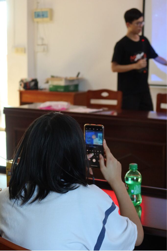 三下乡启明队在天文知识科普环节,用视频、图片与文字相结合,启明团队的许依琳向同学们介绍了恒星、太阳系内的各个行星,对于许依琳提出的各种问题,如太阳系中最大的行星是哪个和太阳系总共有几颗行星等,同学们都积极地进行回答。曹祺珅向同学们科普了航天的历史发展进程,我国在航天领域上取得的成就以及一些基本的天文观测知识,使同学们对天文观测有了一定的了解,一定程度上拥有了独自进行天文观测的能力。在整个天文知识科普授课的环节中,同学们都表现出了极大的兴趣,十分认真地听讲,有的同学还拍下比较有意思的内容。