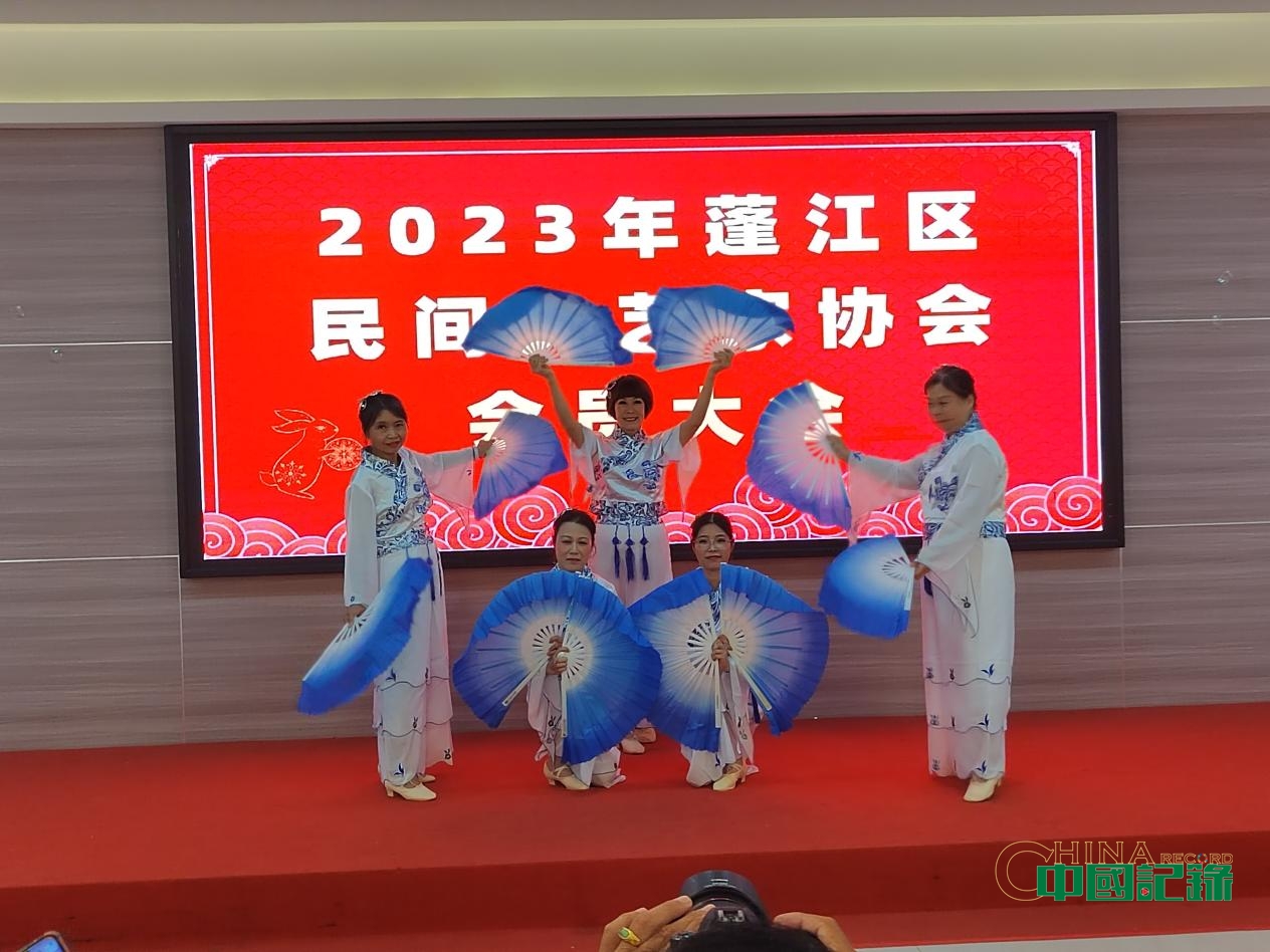 江门市蓬江区民间文艺家协会主席余怀安在大会致辞中,回顾了蓬江民间文艺近年的传承与发展:蓬江是江门市著名的文化之乡,这里诞生了明代大儒陈白沙、近代历史学家陈垣、中国舞蹈之母戴爱莲等文化大家;蓬江也是江门市著名的非遗之乡、民间文艺之乡,目前经蓬江区民间文艺家协会普查登记掌握的民间文艺品种就有:剪纸、诗词、手工铜艺、杜阮外婆凉瓜茶、武术、杂技、根雕、木雕、篆刻、醒狮、筲箕画等30多个种类,蓬江区民间文艺家协会的会员们每一个人均平平凡凡貌不惊人,他们平日来自基层,扎根民间,但是他们每个人均有一项“拿手绝活”,是“大隐隐于市”的“武林高手”,他们每个人均有一技之长,每个人均是能工巧匠。江门市蓬江区民间文艺家协会也是蓬江区最有特色、最具活力、最接地气的文艺协会之一。近年来,蓬江区民间文艺家勤奋创作成果丰硕,东艺宫灯、铜虾制作、杜阮外婆凉瓜茶等“蓬江非遗”名闻遐迩,蓬江区不少民间文艺家被吸收为市、省级民间文艺家协会会员,李仰东、余怀安等还被授予广东省优秀民间文艺家荣誉称号。