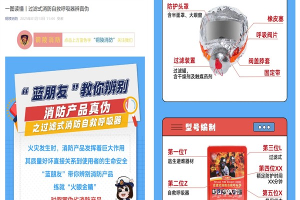 同时消防部门积极开展宣传工作,呼吁广大市民主动关注身边场所的呼吸器配置情况,发现隐患及时举报;积极学习设备使用方法(可登录“铜陵消防”公众号观看教学图文和视频);有条件的高层住宅家庭可以常备消防应急包,定期检查家用呼吸器有效期。