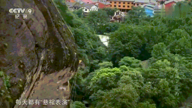 △航拍中国那期江西特辑,最惊险的就是龙虎山复原古人悬棺的表演