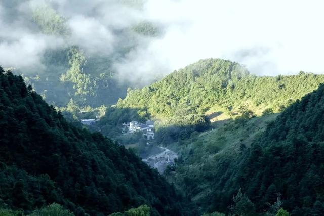 看云雾缠绕山峰,缭绕山涧村庄,构成了奇特绚丽的画作。