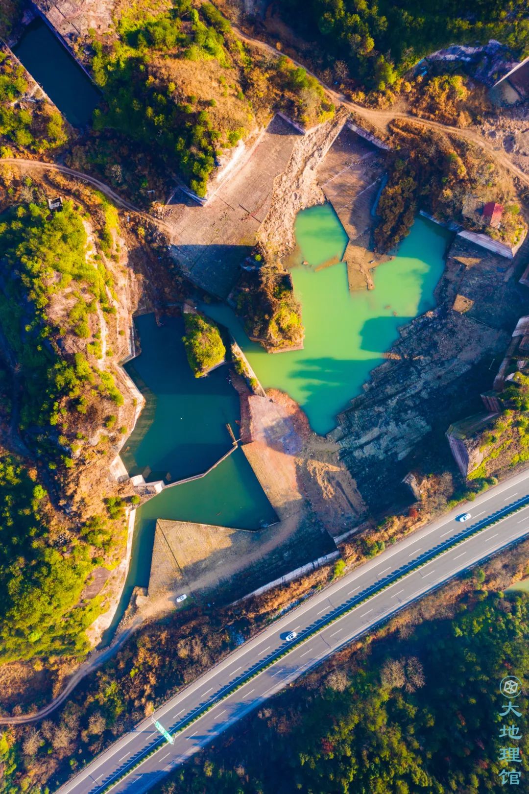 |空中航拍“岩宕”,又是另一种景致。正是有了山中的石头,现代化的公路才得以被铺平|