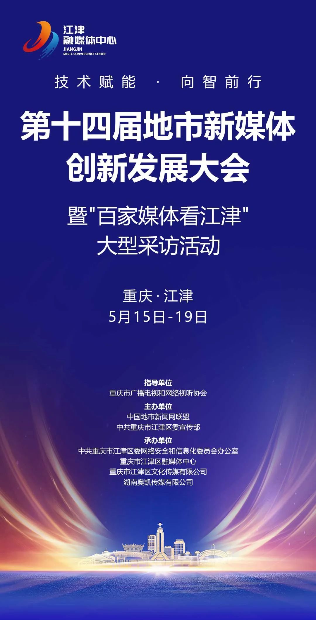 本次活动由重庆市广播电视和网络视听协会作为指导单位,中国地市新闻网联盟、江津区委宣传部主办,江津区委网信办、江津区融媒体中心、江津区文化传媒有限公司、湖南奥凯传媒有限公司承办。
