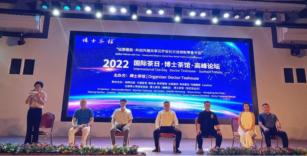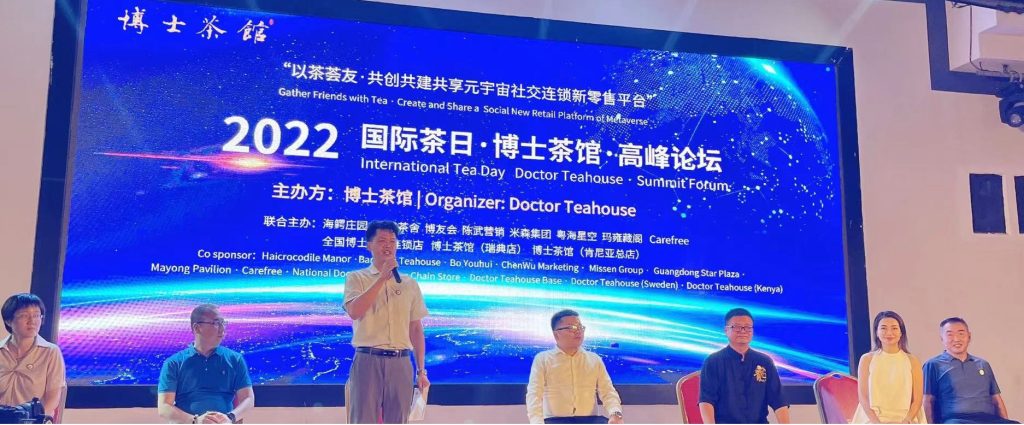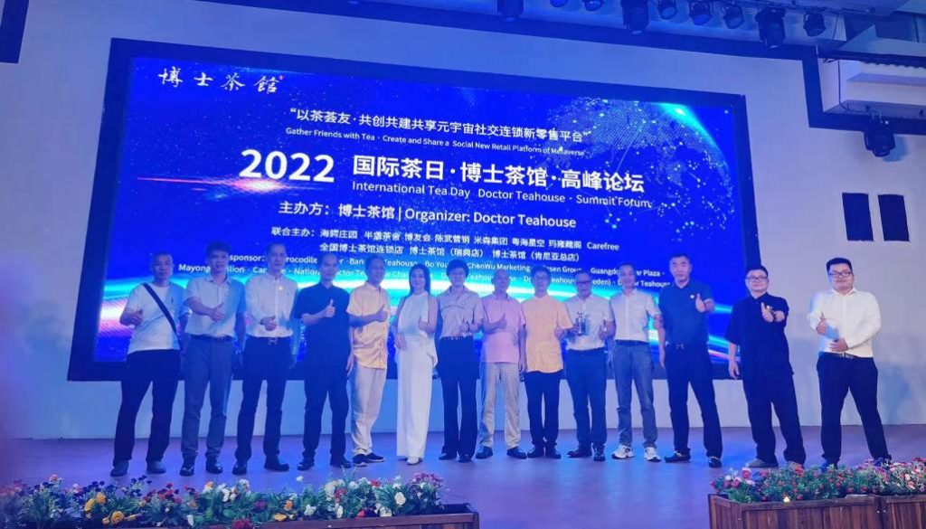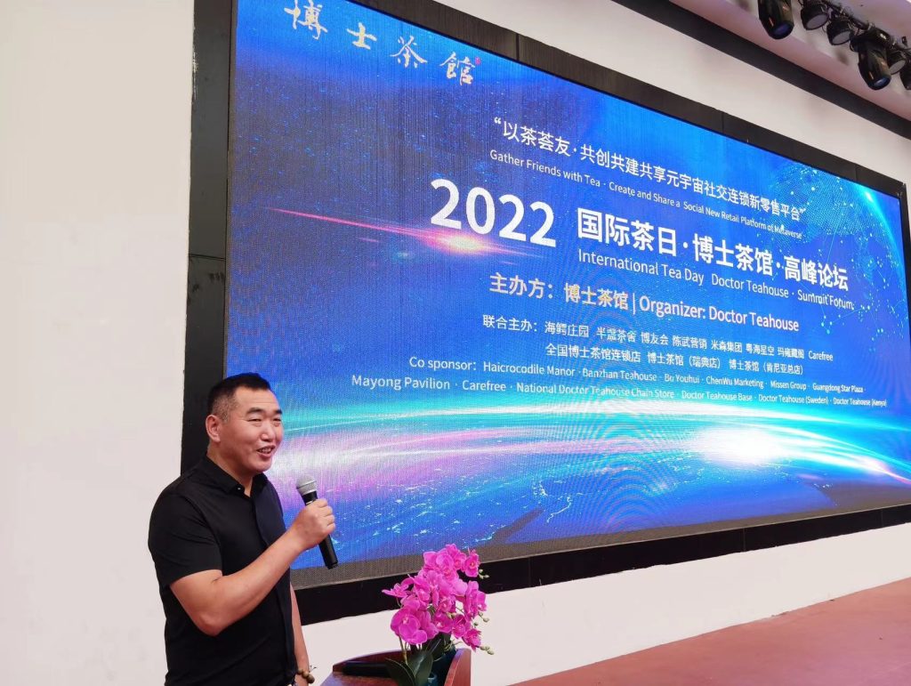 中国记录通讯社据广东邓泗洲稿:“国际茶日”于第74届联合国大会宣布设立,时间为每年5月21日,体现了国际社会对于茶叶价值的认可与重视,对振兴茶产业,弘扬茶文化具有重要意义。为庆祝2022年联合国第三个“国际茶日”,赞美茶叶对经济、社会和文化的价值,鼓舞持续疫情下低迷受挫的消费同行,博士茶馆品牌方于“国际茶o日”期间,联合全国500多家品牌连锁店和海外连锁店,组织召开的国际茶日·博士茶馆高峰论坛在海鳄庄园隆重举办,通过博士茶馆品牌、平台、人才、产品、渠道、营销模式,打造共创共建共享元宇宙社交连锁新零售平台,不断为全国的同行带来增量价值。