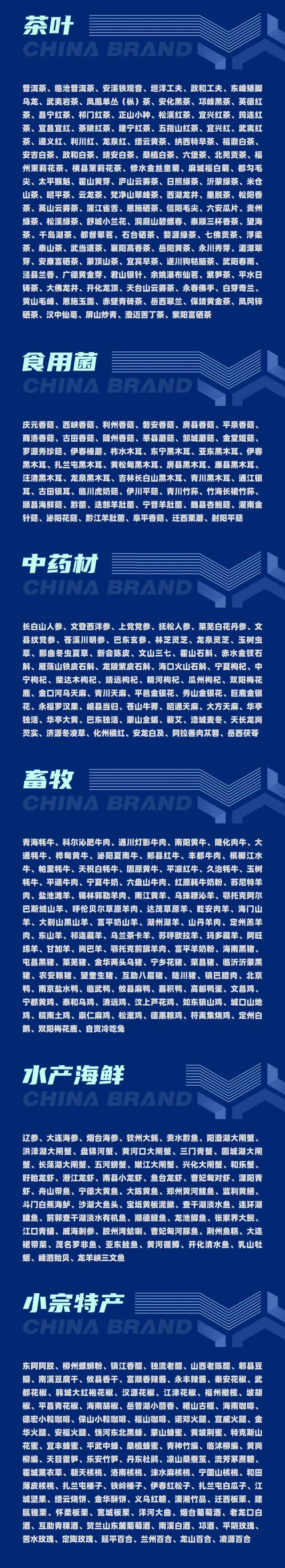 中国区域农业产业品牌包括粮油、蔬菜、果品、茶叶、食用菌、中药材、畜牧、水产、小宗特产9大类。