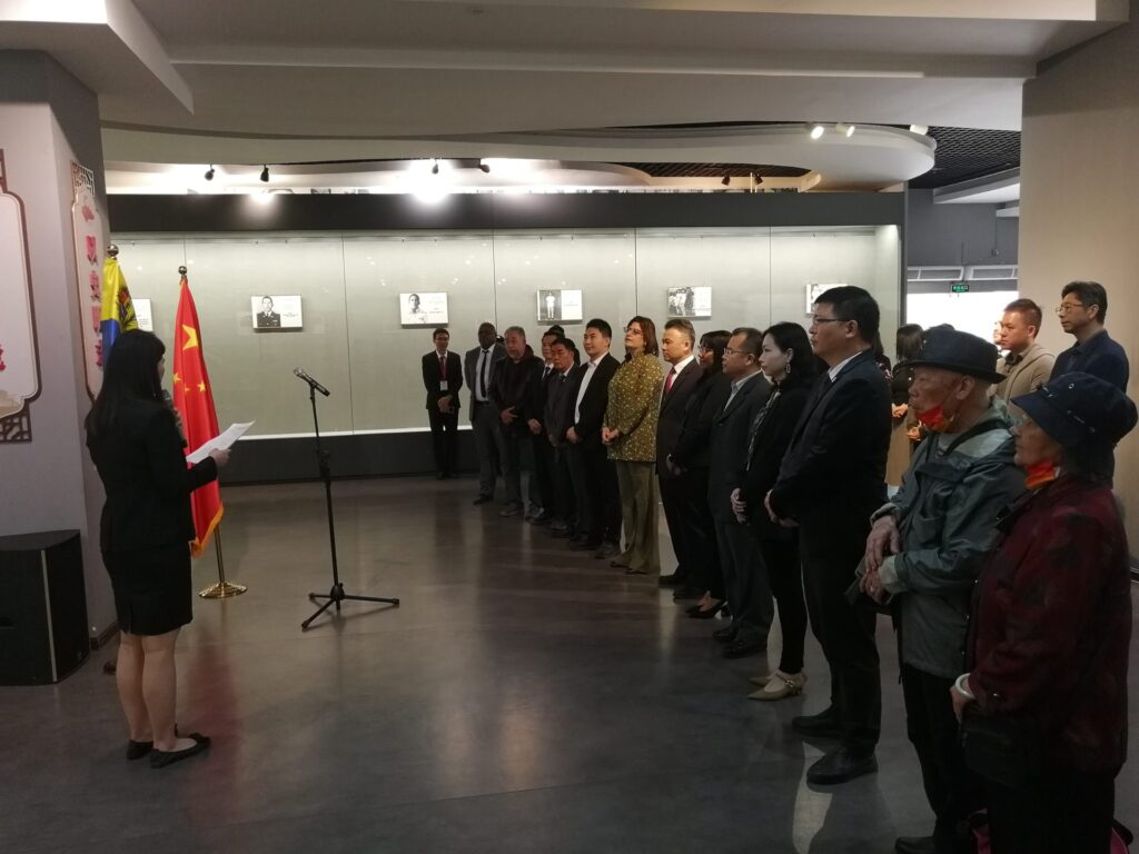 3月14日下午,由委内瑞拉驻广州总领事馆主办的纪念委内瑞拉已故总统查韦斯逝世十周年主题展览《查韦斯从这里路过》人物图片展在江门五邑华侨华人博物馆举行简朴而隆重的开幕式。委内瑞拉驻广州总领事馆一等总领事兼代理馆长车丽·哈布尔女士等一行出席开幕式并致辞。在开幕式上,车丽·哈布尔总领事代表委内瑞拉总统马杜罗向江门市人民政府、江门台山籍旅委侨胞李振山先生、江门恩平籍旅委侨胞甄庭耀先生颁发了纪念牌。