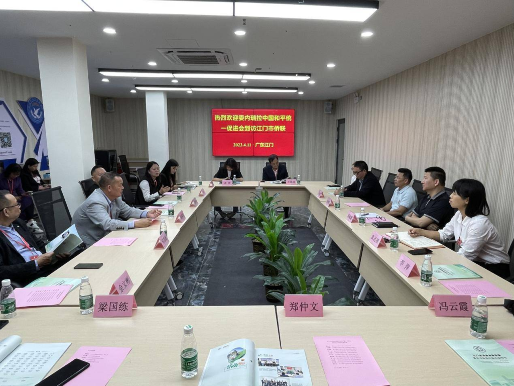 4月11日,委内瑞拉中国和平统一促进会代表团一行18人在委内瑞拉著名爱国侨领、委内瑞拉中国和平统一促进会会长、中南美洲中国和平统一促进会常务副会长聂国常先生带领下先后走访了广州、江门两地,与广东中国和平统一促进会、江门市侨联等开展座谈交流活动。