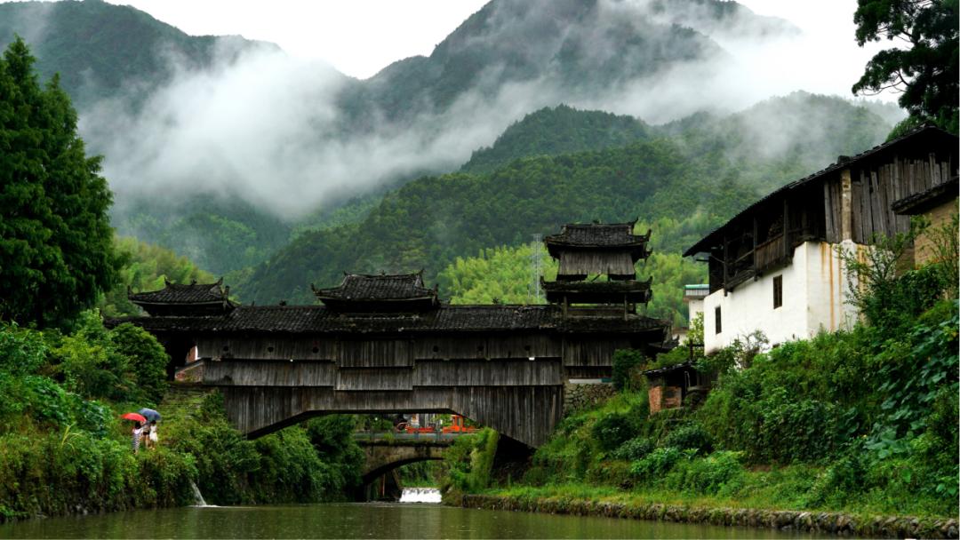 参观月山村【来凤桥、圣旨门、吴文简祠、步蟾桥、如龙桥、马氏行宫、白云桥、云泉寺、月山全景、杉树王、冰臼群】→在【月山云屏山庄】用中餐 → 乘车前往【五都香菇小镇★】 → 入住【寻客栈☆】。