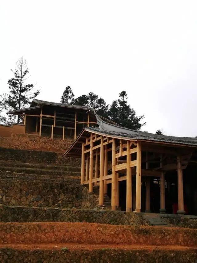 图为珠峰寨谢氏家族后人修缮倒塌的厅堂。张培奋摄