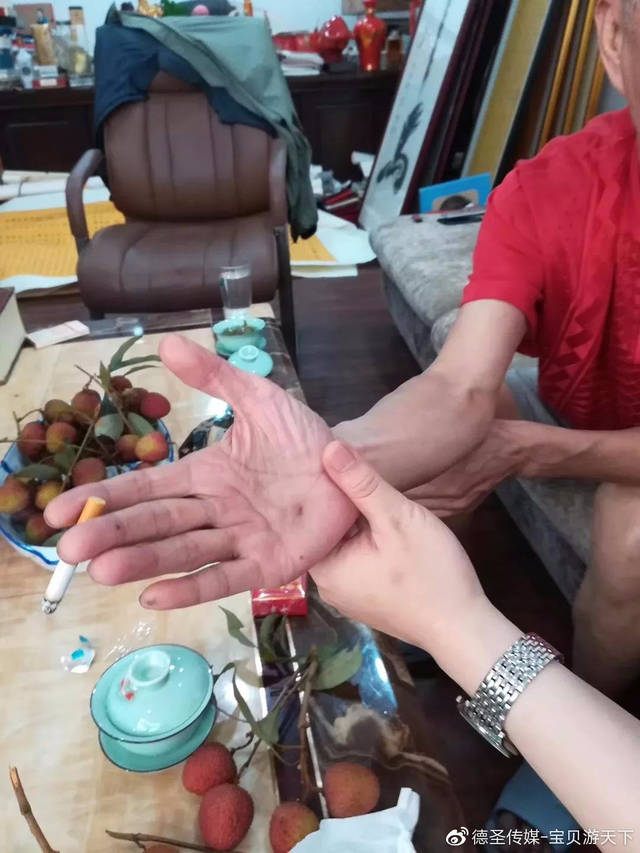 刘总在与宋老师深入交谈时,细心发现宋老师手上因长期用力握笔,导致手掌中下位置结出结实手茧,那手上的老茧成为宋老师多年来持之以恒写作的见证。这是真正的人民艺术家啊!