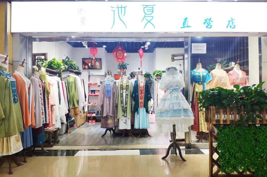 2019年初,香槟广场一楼多家汉服店陆续开业,截至目前,香槟广场一楼内街几乎占据了70%的汉服商家,汉服店铺已达37家,与汉服相关的妆发造型、配饰、汉服摄影等业态均分布在香槟广场一楼、负一楼。