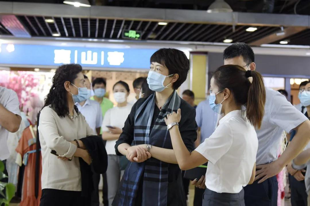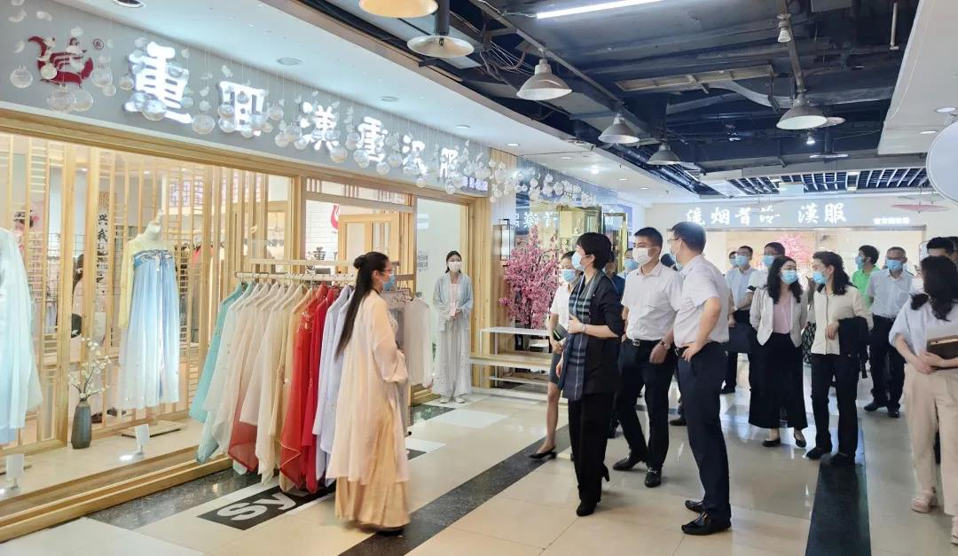 中国记录通讯社消息 7月1日,成都市副市长刘筱柳女士、市政府副秘书长、办公厅主任廖成珍女士、市商务局、市文广旅领导以及锦江区政府等相关领导一行莅临蓝光·香槟广场,就一楼汉服商业进行调研考察,并对香槟广场的汉服商业氛围予以肯定,蓝光嘉宝商业副总经理刘东红先生、项目经理吴蓉霞等人陪同讲解。