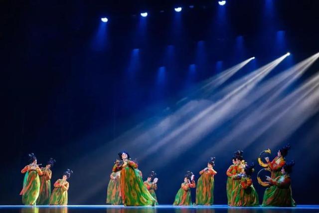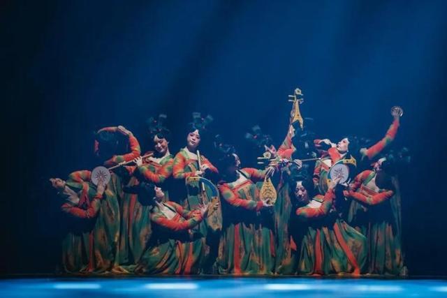 舞台上,《唐宫夜宴》以夜宴的乐师们为主角,展示了唐朝少女们从准备、整理妆容到夜宴演奏的过程。为体现丰腴的唐俑形象,演员们穿着塞海绵的连体衣,嘴里含着棉花登台演出。