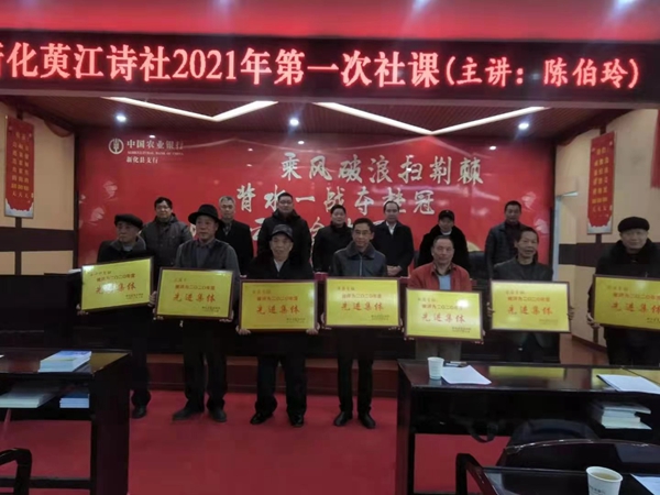 诗社领导为上渡分社、商业分社、白溪分社等7个先进集体及李典南、扶亮清、王在德、方祥祖等先进个人颁发了奖牌和荣誉证书