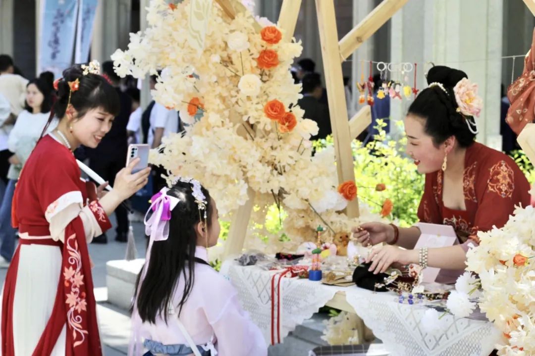 汉服秀以12花神为主题,展现了各个季节不同形制的汉服,与花朵物语的搭配,呈现出汉服更加灵动的华美;古乐器表演、汉舞表演、汉风抄书、汉风集市等让人不由自主放慢脚步,感受汉风生活的惬意。