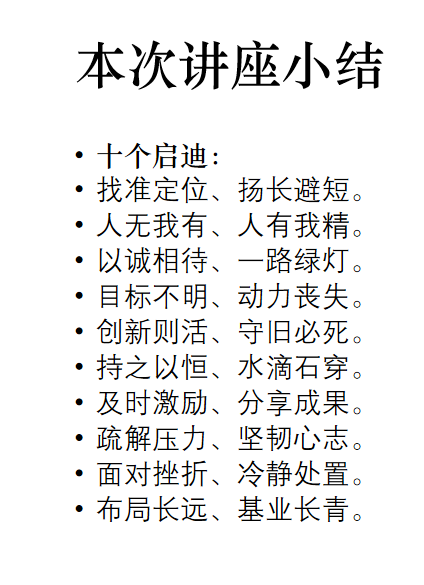 作为2023年商会组织的首次讲座沙龙类活动,本次讲座收到了良好的效果。未来商会还将结合会员的需求多组织相关活动,也欢迎大家及时关注并积极参与!