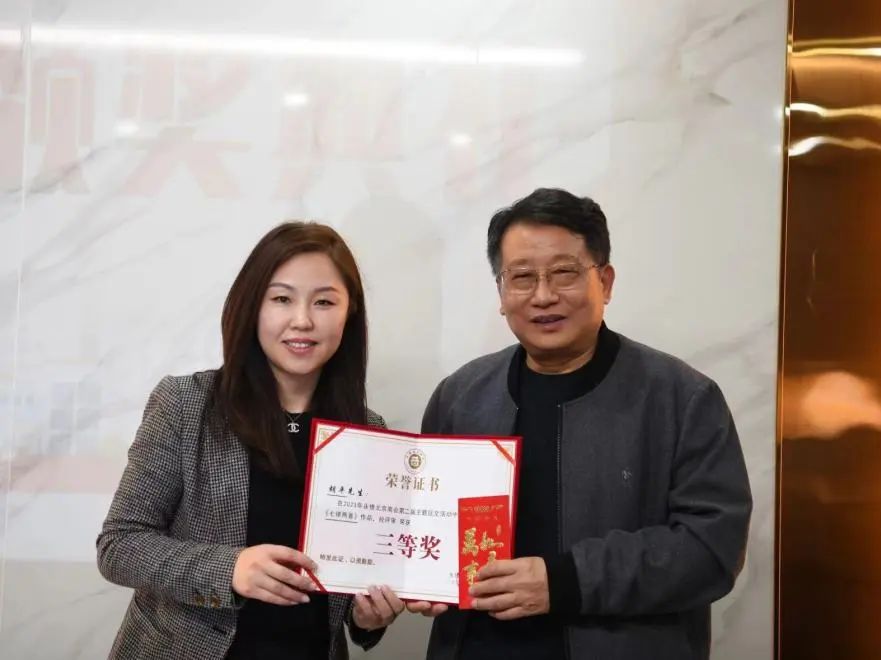 讲座结束后,第二届征文比赛颁奖典礼正式开始,本次征文的主题为:“三年疫情,我们一起走过”,经过评委组评审协商,共选出成人组获奖者五名、青少年组获奖者三名,商会领导、评委将为获奖者颁发了荣誉证书、奖金和奖品。