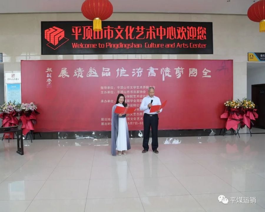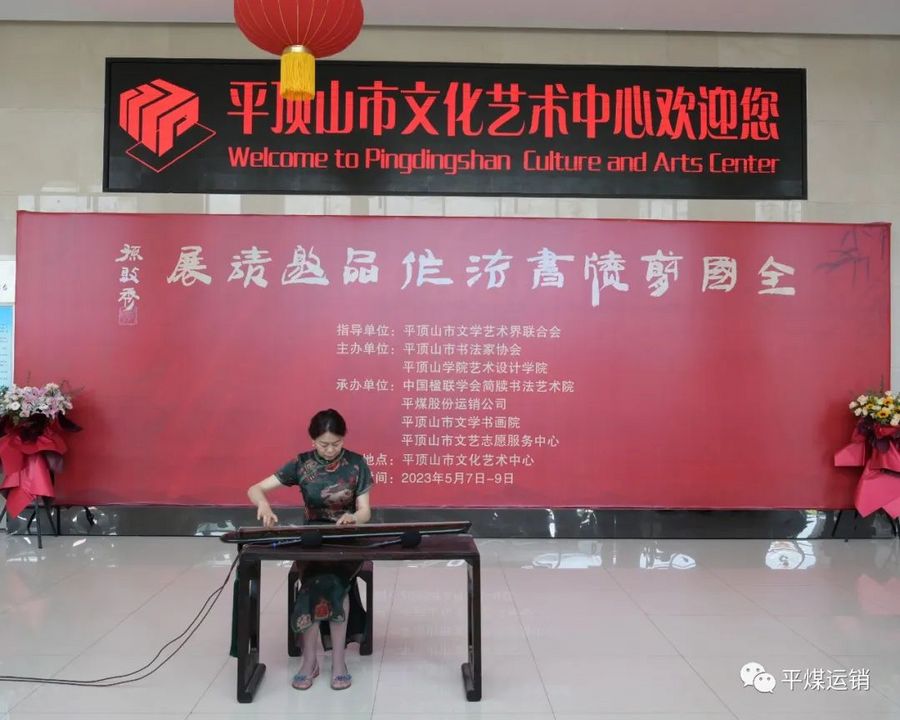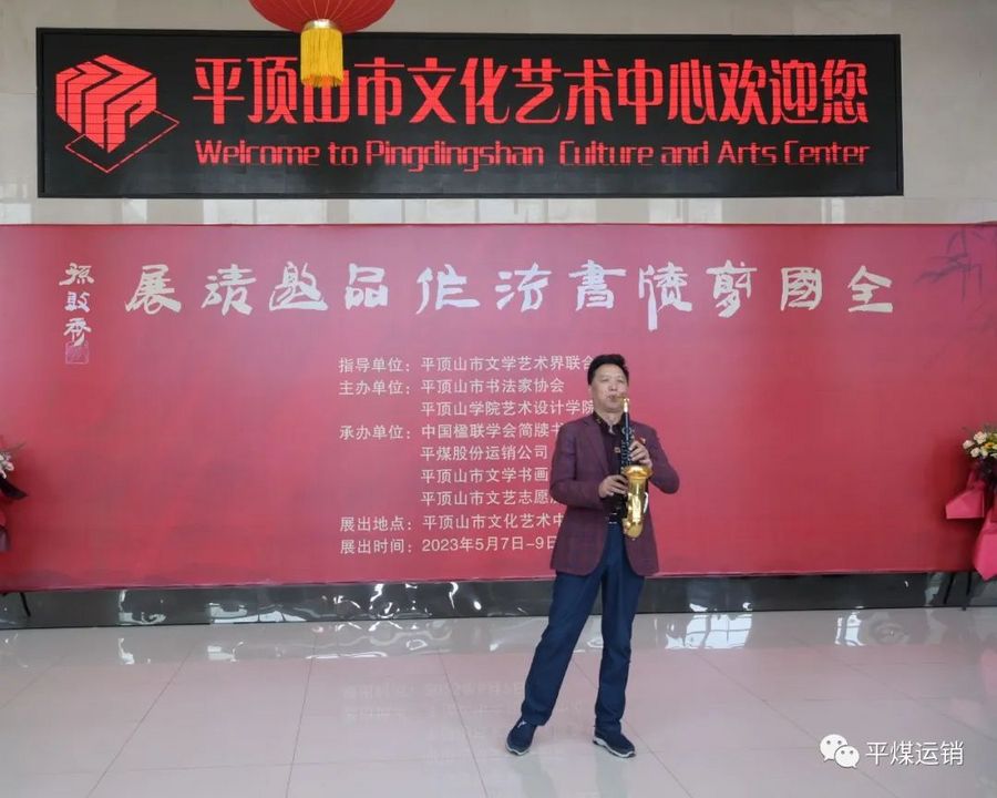 平顶山市书法家协会主席范大岭、平顶山学院艺术设计学院院长刘斐、平煤股份运销公司党委书记孙晓维、中国楹联学会简牍书法艺术院常务副院长张成银先后致辞。开幕式还进行了古琴、诗朗诵和电子萨克斯等文艺表演。