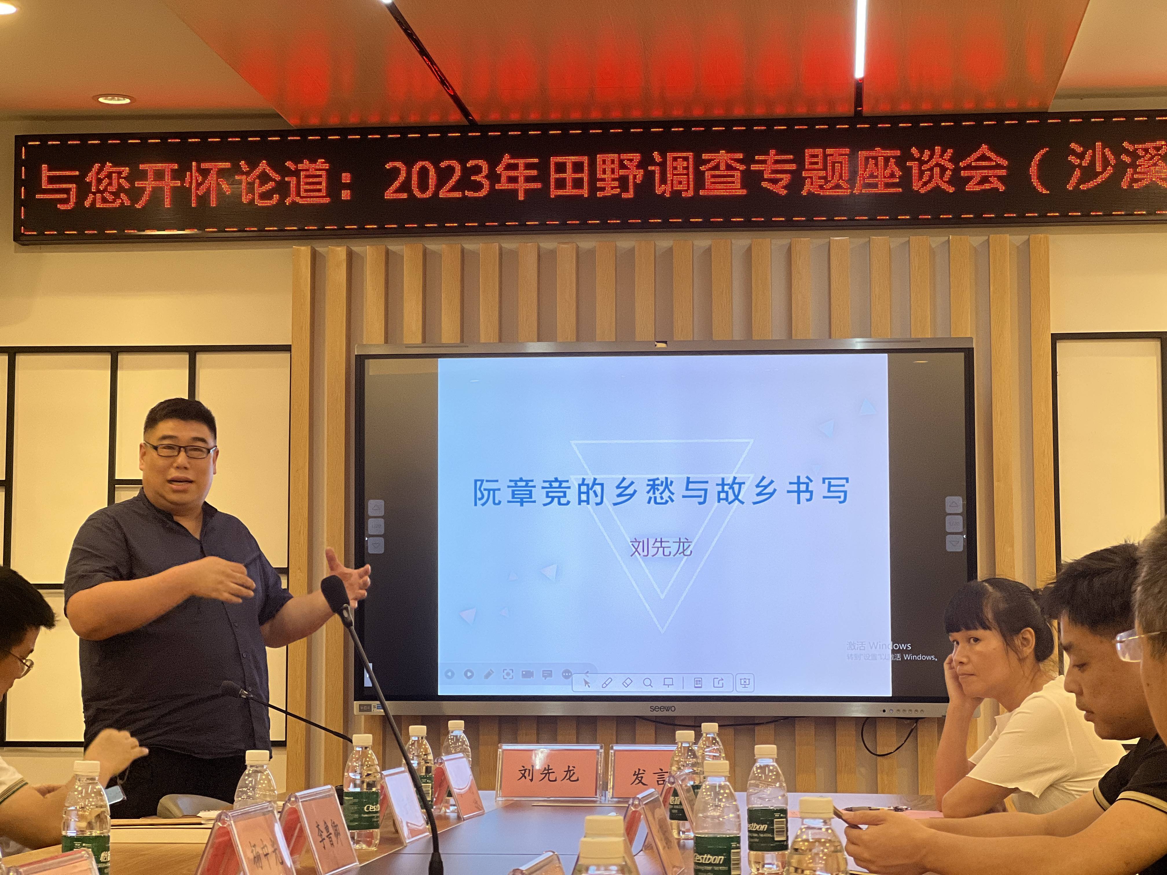图为刘先龙主讲:《阮章竞的乡愁与故乡书写》